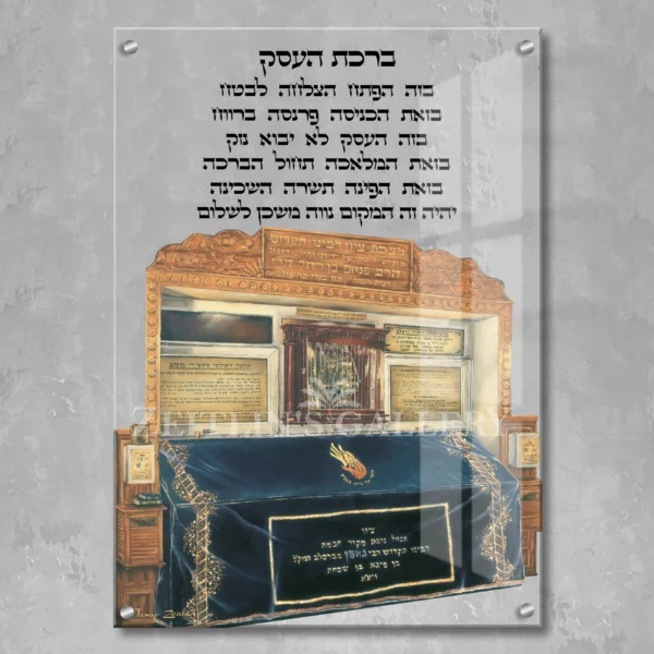 Enhance your workspace or give a gift to a colleague with an artwork from the “Birkat HaEsek” – Business Blessing “ברכת העסק” collection by Israeli artist Tamar Zeitlin. This selection features blessings for business success, each accompanied by a painting of a revered rabbi.
