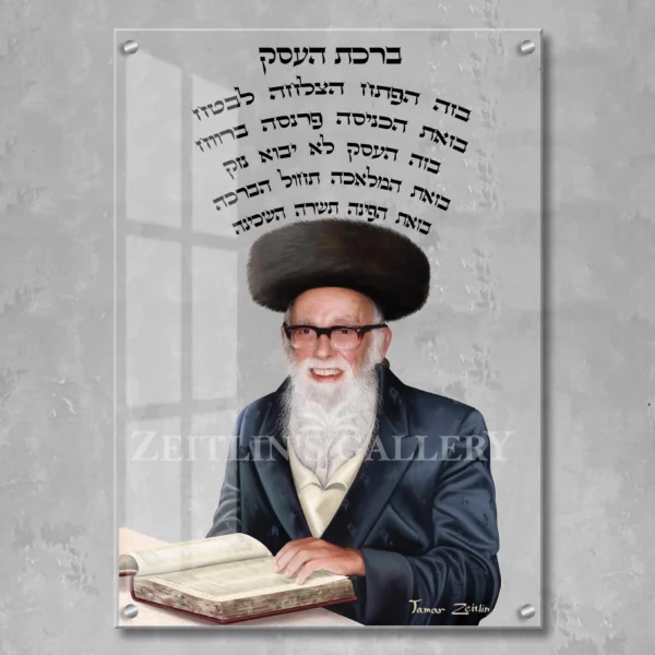 Birkat haesek with a digital painting of Rav Auerbach, print on a acrylic with transparent background.