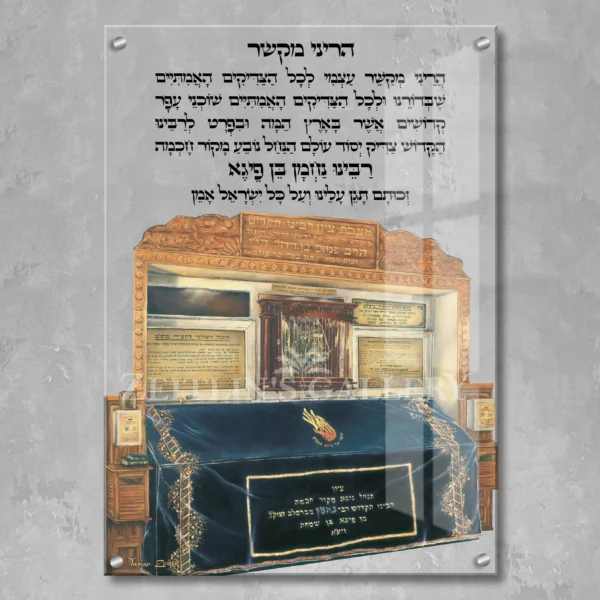 A prayer to recite before praying or performing a mitzvah with the painting of Rabbi Nachman grave in Uman, print on a acrylic with transparent background.