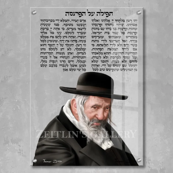 A special prayer for Parnassah (Livelihood) featuring a digital painting of Reb Shayele of Kerestir, renowned as a Segulah for livelihood , print on a acrylic with transparent background.