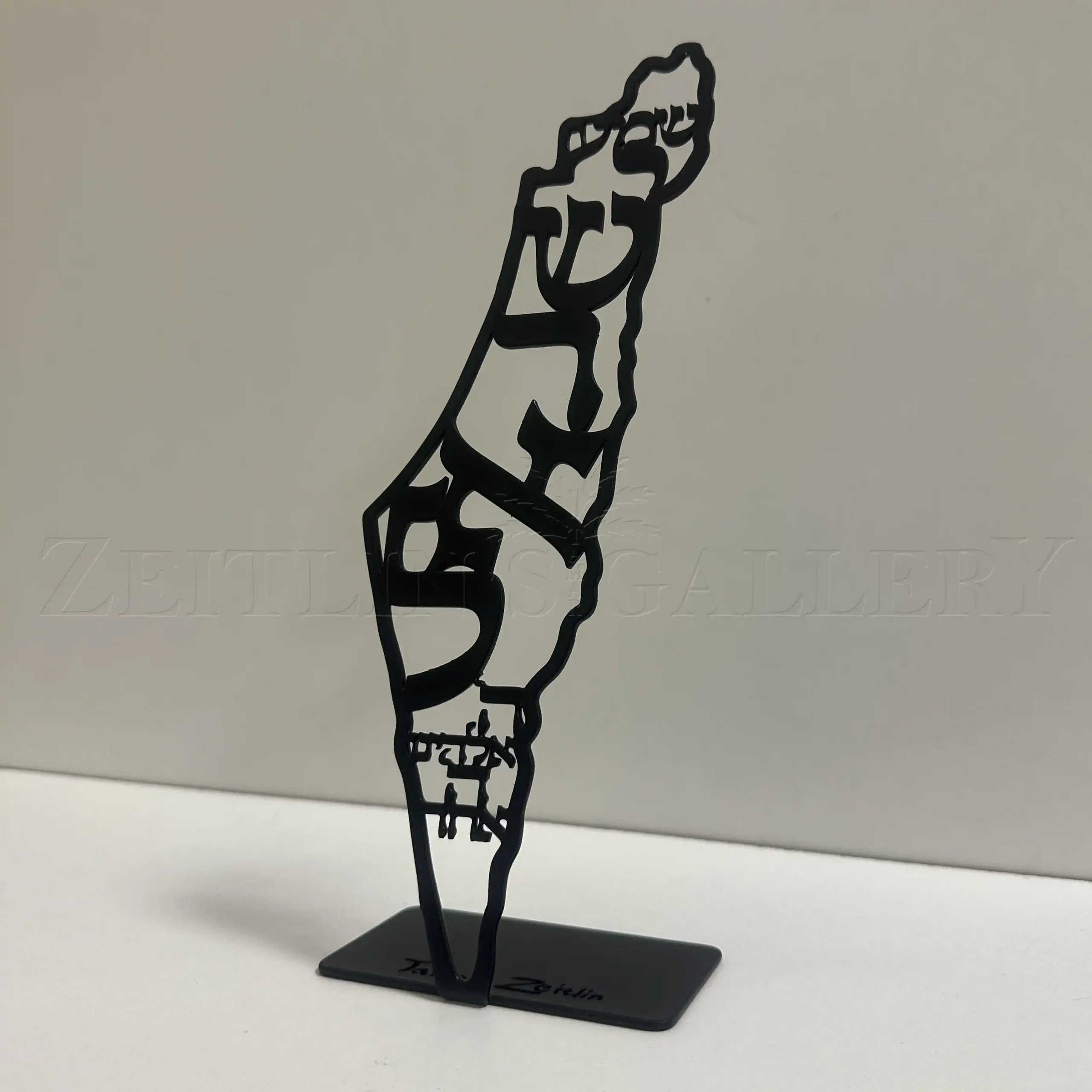 A beautiful metal sculpture of the map of Israel with the verse of Shema Israel prayer: